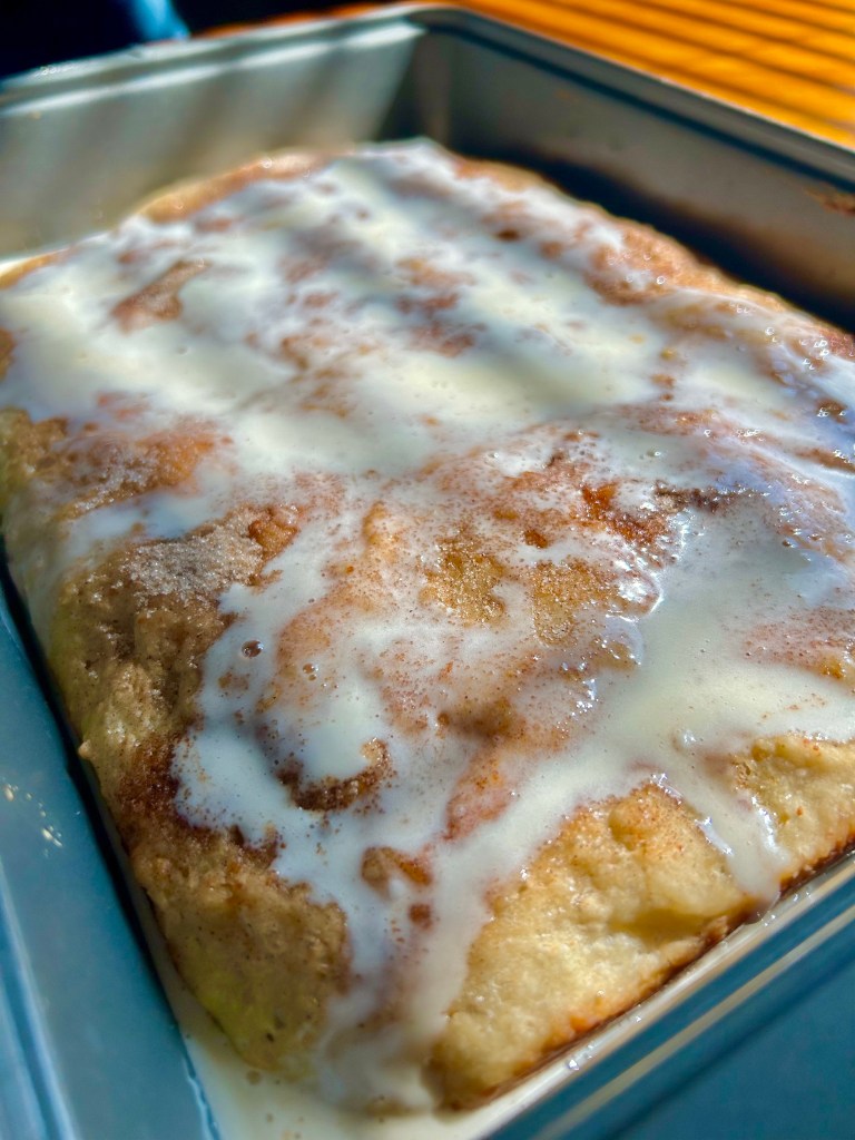 “And in the morning? I’m making waffles focaccia!” I woke up today with an intense craving for focaccia for breakfast, but not our usual cheesy savory recipes. This time, I wanted it on the sweet side. Think – cinnamon roll flatbread.