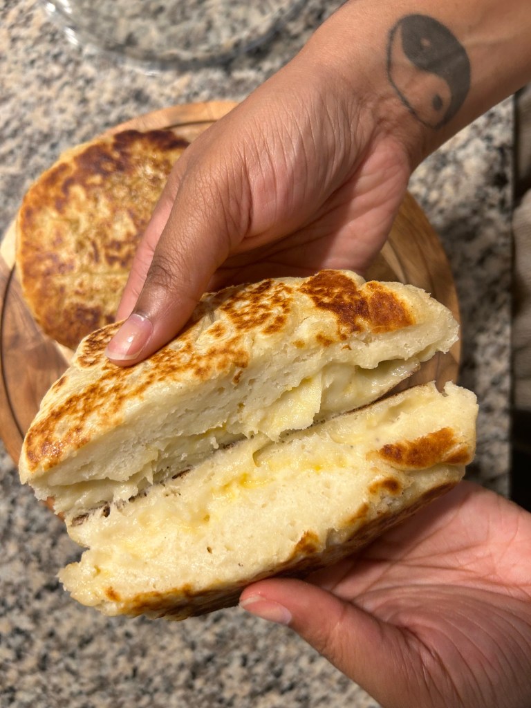 August has been crazy busy and I haven’t really baked in my kitchen all month, so what else to make first than a mega comfort food mash up?? This recipe combines all my faves – cheese, mashed potatoes, and bread (duh)! Two ingredient dough and ten minutes in the oven, I’m partly obsessed with this bread because it really is SO simple to make.