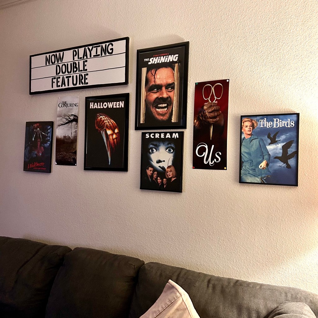 Happy almost Halloween! I’ve been counting down the days to spooky season, and it’s finally here. From binging on Halloween movies to decorating the house with pumpkins and spiders; this is my season! My proudest DIY decoration this year? An ode to horror: I framed some of my favorite classic movie posters and painted a lightbox-style canvas, giving a nod to those old-school double feature theaters. Keep scrolling to see the photo below—it’s pretty awesome, if I do say so myself!