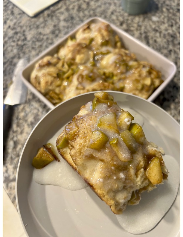 I stumbled upon this recipe on Instagram while searching for some good holiday breakfast ideas. I mentally prepared myself for chaos—mixing cooked cinnamon apples into biscuit dough sounded like a sticky disaster. But surprisingly, it wasn’t too bad! And shout out to the recipe creator for including an easy swap for sourdough discard (Greek yogurt), because let’s be real—I was not about to babysit a starter.