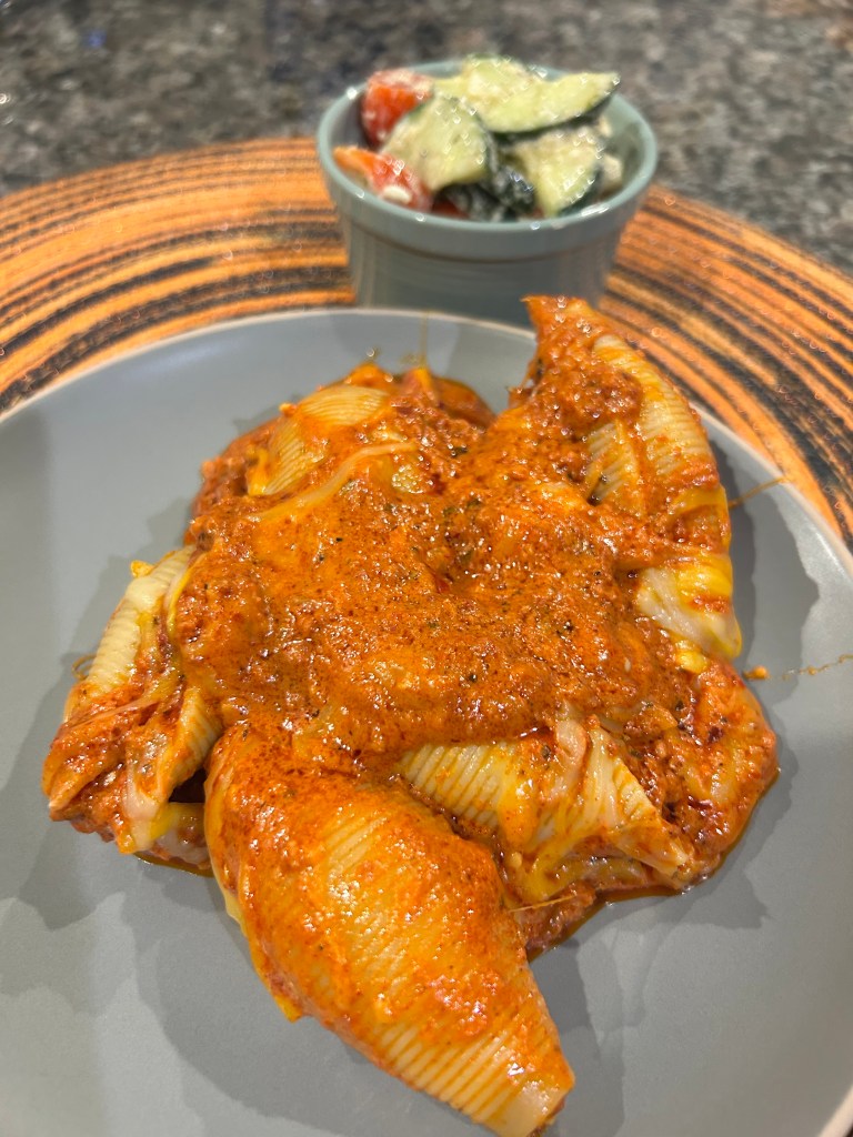 - Serve together — the creamy, spicy shells and zesty salad balance each other perfectly. Enjoy!